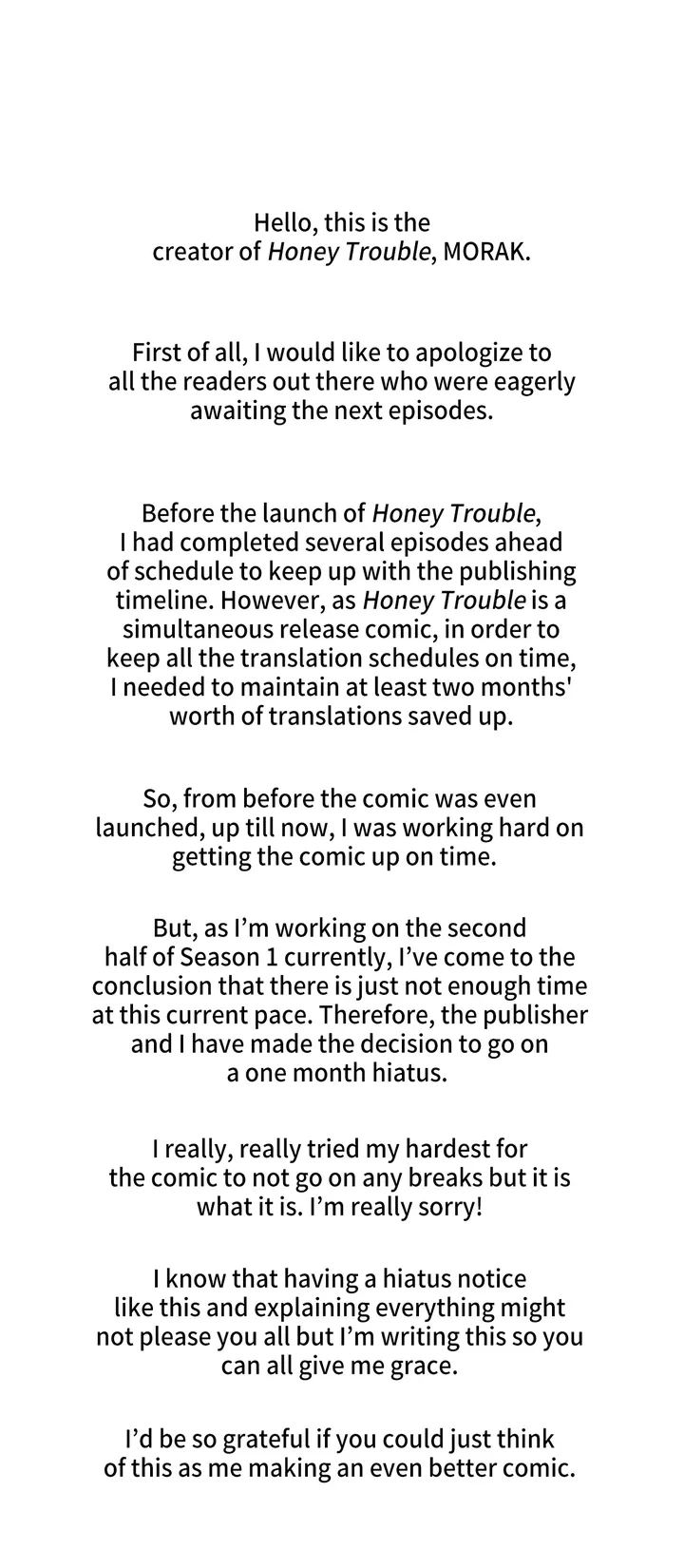 Read Manhwa Honey Trouble - 0016 Honey Trouble (Official) Hiatus Notice