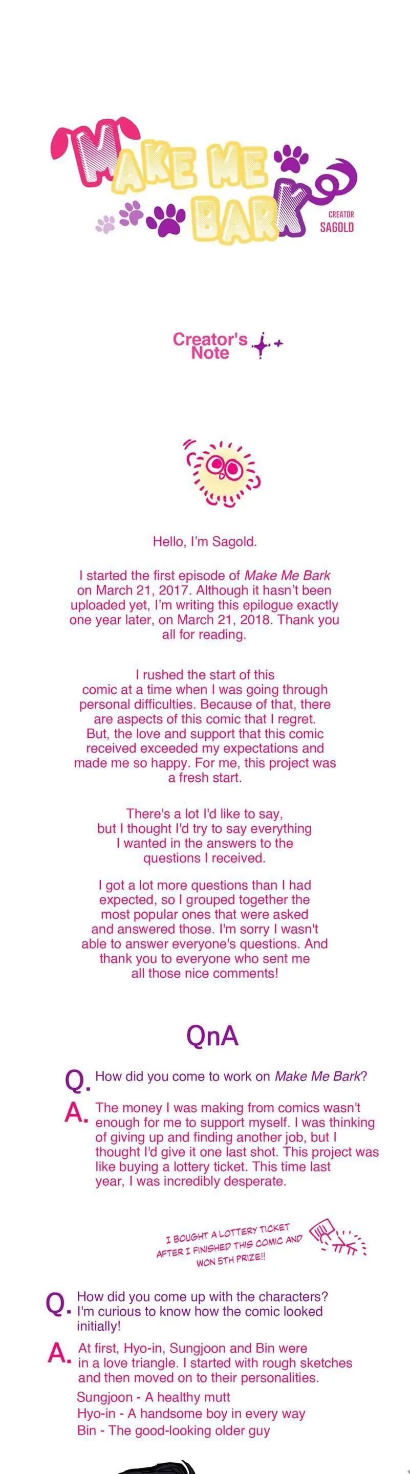 Read Manhwa Make Me Bark - 0031 Make Me Bark [EN] Chapter 030.5 Creators note