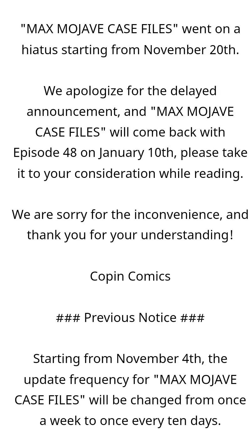 Read Manhwa Max Mojave’s Case - 0048 Hiatus Announcement