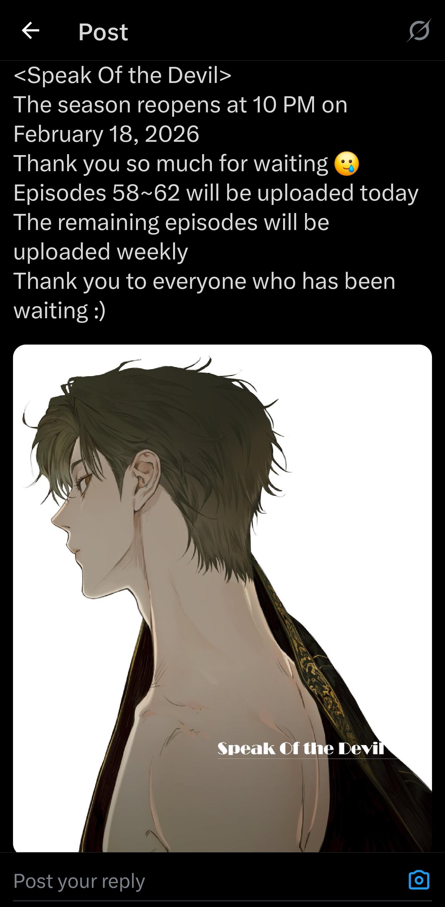Read manhwa Speak of the Devil - 0104 notice. Comeback