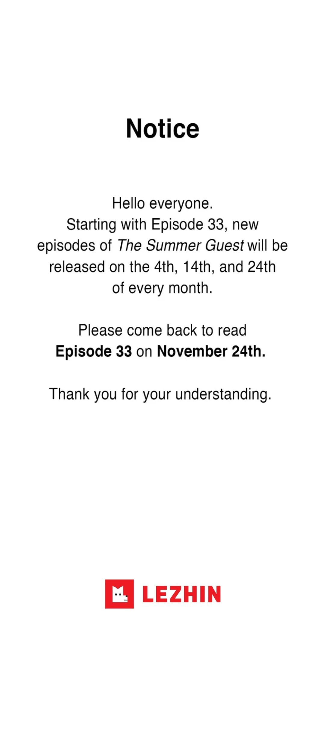 Read Manhwa Summer Guest - 0037 notice. Schedule change notice